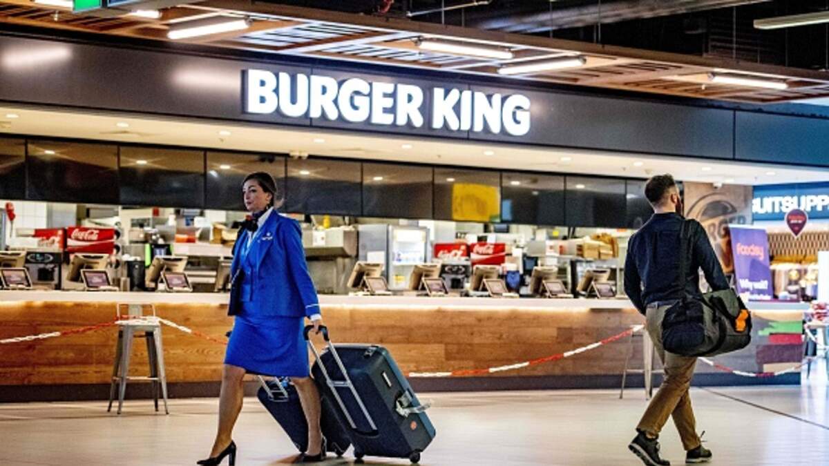 Flight attendant closes overhead bins upside down with high heels